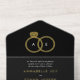 Modern Gold Ring Monogram Black and White Wedding All In One Invitation