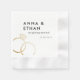 A modern minimalist engagement party cocktail napkin has simple text and intertwined faux gold wedding rings.