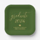 Modern Forest Green & Gold Script 2024 Graduate Graduation Party Paper Plates