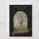 Celebrate your daughter’s high school, college, or university graduation with this chic and trendy gold script arch photo announcement card. Showcasing a modern arch design paired with sophisticated gold calligraphy, this personalised invitation is the ideal way to share her monumental achievement with friends and family. The casual yet elegant layout offers space for a beloved senior portrait or graduation photo, along with customisable event details in striking typography. Perfect for graduation parties, open houses, or formal announcements, this easy-to-edit photo card can be personalised quickly with the user-friendly template. Designed by artist Catherine Sweetman, this graceful arch invitation blends modern style with timeless appeal, making it a stunning keepsake to commemorate your daughter’s proud moment. Perfect for 2025 graduation announcements, senior photo cards, and custom graduation party invitations.