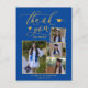 Elegant Gold Script Blue 4 Photo College Graduation Thank You Postcard. Give Wow 'Thanks' to your family and friends with this beautiful thank you card. All the texts are pre-arranged for you to personalise easily and quickly with your own words.