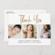 Introducing our "Modern Baby Multi Photo Birth Announcement Simple thank you postcard" – a chic and heartfelt way to express your gratitude. This thank you card features modern gold print glitter typography and space for three custom photos, adding a personal touch to your message of thanks.