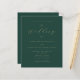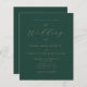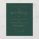 This simple, modern wedding invitation features gold-coloured text on a dark emerald green background, with the words "the Wedding of" in elegant handwriting calligraphy. Add the couple's names in serif and the wedding details in sans serif font. The reverse side provides space for wedding details, along with a QR code guests can scan to visit your website and RSVP, which saves the cost of printing and mailing separate RSVP. (NOTE: Envelopes are not included automatically with this budget invitation. To add envelopes to your order, please use the "Envelopes" drop-down menu.)