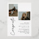 This modern, elegant stylish photo graduation announcement invitation features a script graduate overlay and customisable name, school and photo on the front. The back has a hand lettered congrats moveable object an editable event details with  2 photos. Click the edit button to customise this design.