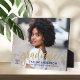 Stylish and elegant graduation plaque sign with easel features a senior photo with "graduate" faux gold foil script overlay. Personalise the modern custom text with your grad's name, school, and class year. Makes a beautiful keepsake to display in your home!