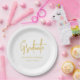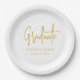 Modern Trendy gold Script Graduation Party custom white paper plate a Elegant Minimalist Design