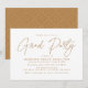 Fun and modern graduation party invites featuring "Grad Party" in a trendy gold script with your graduation party details displayed below. The simple graduation party invite reverses to display a cute gold and white dotted geometric pattern.