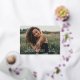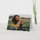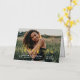 Stylish and elegant folded graduation thank you card features a senior photo with trendy "thank you" real gold foil script overlay. Personalise the modern white custom text with your grad's name, school, and class year. A custom thank you message can be added or handwritten inside the card.