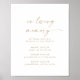 This modern gold script in loving memory wedding memorial sign is perfect for a minimalist wedding. The simple yellow gold color design features unique industrial lettering typography with modern boho style. Customizable in any color. Keep the design minimal and elegant, as is, or personalize it by adding your own graphics and artwork.