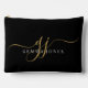 An elegant modern minimalist style monogrammed accessory bag, with a sans serif name and elegant gold swash script initials on black.