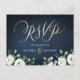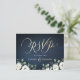 Modern faux gold RSVP calligraphy and watercolor white floral eucalyptus greenery on dark navy blue background, elegant and stylish, great for greenery rustic wedding, botanical garden wedding, boho floral wedding in summer and winter.