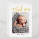 A simple modern thank you card featuring gold foil pressed thank you calligraphy script, portrait photo and minimal text on the front. The back has a personal message that is removable if you prefer to hand write your message. Click the edit button to customise this design.