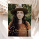 Celebrate the grad with our stylish photo graduation announcement. The graduation announcement displays the graduate's vertical photo with "Graduate" in a real gold foil calligraphy script overlay. Personalise the front of the modern graduation announcement by adding the graduate's name, school name, and graduation year. The announcement reverses to feature a trendy black and white dotted geometric pattern. The design is perfect for both high school and college graduates.