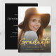 This is a modern and elegant high school graduation party invitation using a gold script font overlay along with a single minimalistic photo on the front. The reverse side includes a message that you can personalise. Please contact the designer for any queries related to this design.
