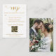 this is modern minimalist trendy gold scriot rsvp wedding photo card,it gives 3 options for your guest to choose how they want to rsvp. the traditional way, or to scan qr code or by website.