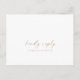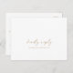 This modern gold script song request RSVP postcard is perfect for a minimalist wedding. The simple yellow gold colour design features unique industrial lettering typography with modern boho style. Customisable in any colour. Keep the design minimal and elegant, as is, or personalise it by adding your own graphics and artwork. Build your wedding guest list and your dance floor song list all at once! This wedding response postcard conveniently asks guests if they will be able to attend your wedding, and also what song will get them to dance.