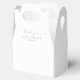 This modern gold script thank you favour box is perfect for a minimalist wedding. The simple yellow gold colour design features unique industrial lettering typography with modern boho style. Customisable in any colour. Keep the design minimal and elegant, as is, or personalise it by adding your own graphics and artwork. Personalise the favour box with your name and the date.
