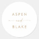 These modern gold script wedding envelope seals are perfect for a minimalist wedding. The simple yellow gold colour design features unique industrial lettering typography with modern boho style. Customisable in any colour. Keep the design minimal and elegant, as is, or personalise it by adding your own graphics and artwork. Personalise the label with the names of the bride and groom.