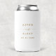 This modern gold script wedding favour can cooler is perfect for a minimalist wedding. The simple yellow gold colour design features unique industrial lettering typography with modern boho style. Customisable in any colour. Keep the design minimal and elegant, as is, or personalise it by adding your own graphics and artwork. Personalise the can cooler with the names of the bride and groom and the wedding date.