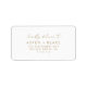 These modern gold script wedding RSVP address labels are perfect for a minimalist wedding. The simple yellow gold colour design features unique industrial lettering typography with modern boho style. Customisable in any colour. Keep the design minimal and elegant, as is, or personalise it by adding your own graphics and artwork. These labels are perfect for your RSVP envelopes and more!