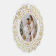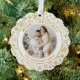 Modern Merry Christmas Holiday Photo Ornament Card - White Background with Gold Snowflakes. This is a greeting card that is also an ornament.