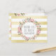 Modern Gold Stripes & Pink Floral Roses Thank You Postcard