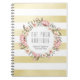Modern Gold Stripes & Pink Floral Roses Wreath Spiral Notebook