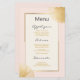 An elegant yet modern design featuring faux gold foil luminous succulents in opposite corners of this wedding menu. A light blush pink background with matching text colour for the headings.