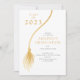 Minimalist Class of 2022 graduation party invitation featuring a gold tassel set on a white background. Visit our shop to view this design in a variety of school colours.