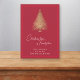 add your family name to this beautiful red christmas card featuring, a festive gold tree in gold and text saying chritmas time is family time.