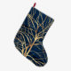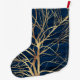 Modern Gold Tree Silhouette Minimal Blue Design Large Christmas Stocking