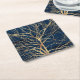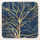 Modern Gold Tree Silhouette Minimal Blue Design Square Paper Coaster