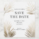 Modern gold tropical leaf classy stylish wedding save the date wine label announcement.