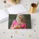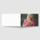 Retirement guest book printed with a photo of the retiree on the cover. Name and event printed in neat modern gold foil letters. Glam retirement party guest book personalised with a photo. Guestbook for a retirement party in a glam design printed with gold foil text atop a photo of the retiree on the cover.