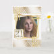 Celebrate your 21st birthday with this modern and chic design featuring faux gold plaid stripes on white that line the top and bottom edge of the card and frame a square faux gold geometric photo frame. The numbers twenty one appear in a faux gold at the bottom giving a stylish and elegant look to the overall design. The message inside may be changed to suit your personal requirements. Ideal for women.