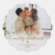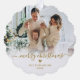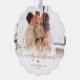 Minimalist Modern Cute Gold Script 2 Couple Photo Merry Christmas Script Holiday Ornament Card. This festive, simple minimalist, whimsical two photo holiday greeting card template features Family Name, Year and a „Merry Christmas” greeting text which is written in a hand lettered swirly swash-tail font calligraphy script photo overlay in gold on white gradient. Pretty greeting card for your family and friends in Christmas Holiday season.