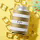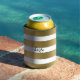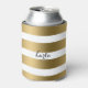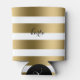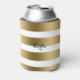 Modern Gold & White Stripes pattern Monogram Can Cooler