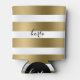 Elegant modern gold and white stripes pattern with black accents and monogram.