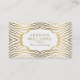 Elegant modern gold tones zebra stripes print over white background. Swirly white frame with gold border for your customisable information. Double sided customisable business card template.
