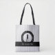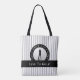 Chic custom tote bag features a female golfer silhouette placed on a realistic golf ball image, framed by curved text “GOLF GOLF GOLF GOLF” in crisp white. A black band holds your personalised name or short phrase in elegant white script. The background showcases a trendy vertical dash stripe pattern in ultimate grey and white. Both sides are customisable — add a name on one and a phrase like “Live to Golf” on the other. Makes a stylish gift for golf lovers, athletes, or tournament participants. Colours and fonts are editable in the design tool. Message BeachPauseDesigns with questions or custom requests.