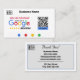 This google review business card template has a modern design with the traditional google colours in the design. The front of the card has your logo, business name, a message and call to action to leave a review, your google review QR code and a thank you message at the bottom. The backside of the card is your business card side having your logo, phone number, email address, website and physical address. This card is 100% customisable so change it to your liking. Google review business cards are a much needed marketing asset in the small business industry because they help to increase the review capture rate when used properly. The best time to hand out a review business card is after a customer makes a positive statement about your products or service. Placing a stack at the point of sale is also an effective method to capturing reviews for not all customers will comment even after they've had a great experience. By placing cards in a prominent location it will make it convenient for them to leave a review at a later time. If you have any special requests or need help with this template please feel free to message me I will be more than happy to assist you. Thanks! Sandy