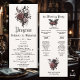 Immerse your wedding in a tapestry of gothic beauty – A black raven sits atop a bouquet of woodrose and charcoal black roses on the front - One the back with further details, coordinating woodrose and charcoal flowers are enhanced with bats and bat wings. Embellished with Old English and Gothic calligraphy. Use our easy to customise template to personalise with your details. . Wedding design Created by ©WhimsicalArtwork™ This is part of a complete Wedding Stationery Suite