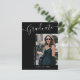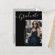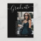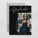 This modern elegant yet simple graduation announcement card, features modern text with elegant calligraphy script. The graduates photo highlights the front of the card while the back of the card offers personalised text spaces for information about the graduation and future journey. White writing on regal black or easily customise the background to a colour of your choice. To see more items like this, visit my store here at "www.Zazzle.com/LakeViewCardCo". Thanks