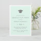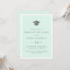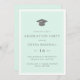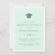 A simple and modern graduation party invitation featuring a grey and white graduation cap on a block mint green rectangle frame with an inner white frame. Details of the party are in grey serif font. The reverse is in mint green. Click 'customise further' to edit the colours.