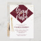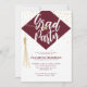 Modern GRAD Hat Cap Burgundy Maroon Red Gold Photo Graduation Party Invitation