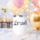 Simple and modern graduation design with a minimalist feel features "grad" in soft black, with your graduate's name and school beneath, and their graduation year worked into the design. Ideal for college or advanced degree graduations. Customise for your graduate, their friends, or the whole class for a unique gift or graduation party favour.