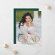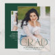 Announce your high school or college graduate's graduation with this modern graduation announcement. The graduation announcement displays "Grad" in trendy dark green lettering with the graduation year displayed inside of the letter 'd'. Personalise the front of the announcement with the graduate's vertical senior photo, name, and school. The announcement reverses to feature an additional photo displayed inside of a white square frame with your message shown below.
