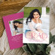Announce your high school or college graduate's graduation with this modern graduation announcement. The graduation announcement displays "Grad" in trendy magenta pink lettering with the graduation year displayed inside of the letter 'd'. Personalise the front of the announcement with the graduate's vertical senior photo, name, and school. The announcement reverses to feature an additional photo displayed inside of a white square frame with your message shown below.
