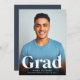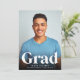 Simple and modern photo graduation announcement with a minimalist feel features "grad" along the bottom, with your graduate's name and school beneath, and their graduation year worked into the design. Ideal for high school, college, or advanced degree graduations. Add a personal message to the back, along with an additional photo.