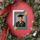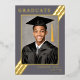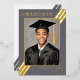 Celebrate your son’s university graduation with this grey and gold foil graduate announcement card with easy to use photo template and modern typography with gold foil frame and three gold foil stripes on the front and graduation details in modern grey typography on the back with grey frame and stripes. Original design by artist Catherine Sweetman